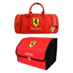 - ✅ ست دو تکه و کاملاً هماهنگ: شامل باکس نظمدهنده صندوق و ساک ورزشی/سفری؛ هر دو با رنگ قرمز نمادین و لوگوی پرافتخار فراری برای یک استایل یکپارچه و چشمنواز.