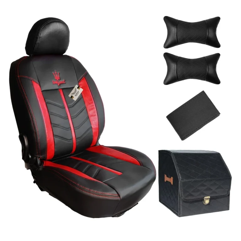 روکش صندلی پژو 206 و 207 و رانا پلاس چرم مدل کوئین همراه با پشت گردنی، دورفرمان و باکس سایز کوچک